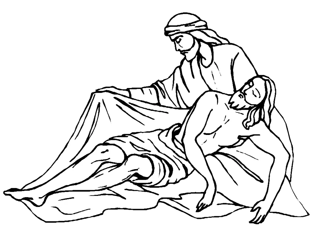 Joseph wickelt Jesus für die Beerdigung Malvorlagen ein