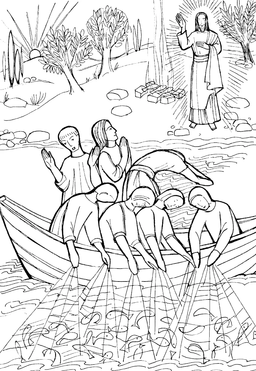Jesus wundersamer Fang von Fisch Malvorlagen
