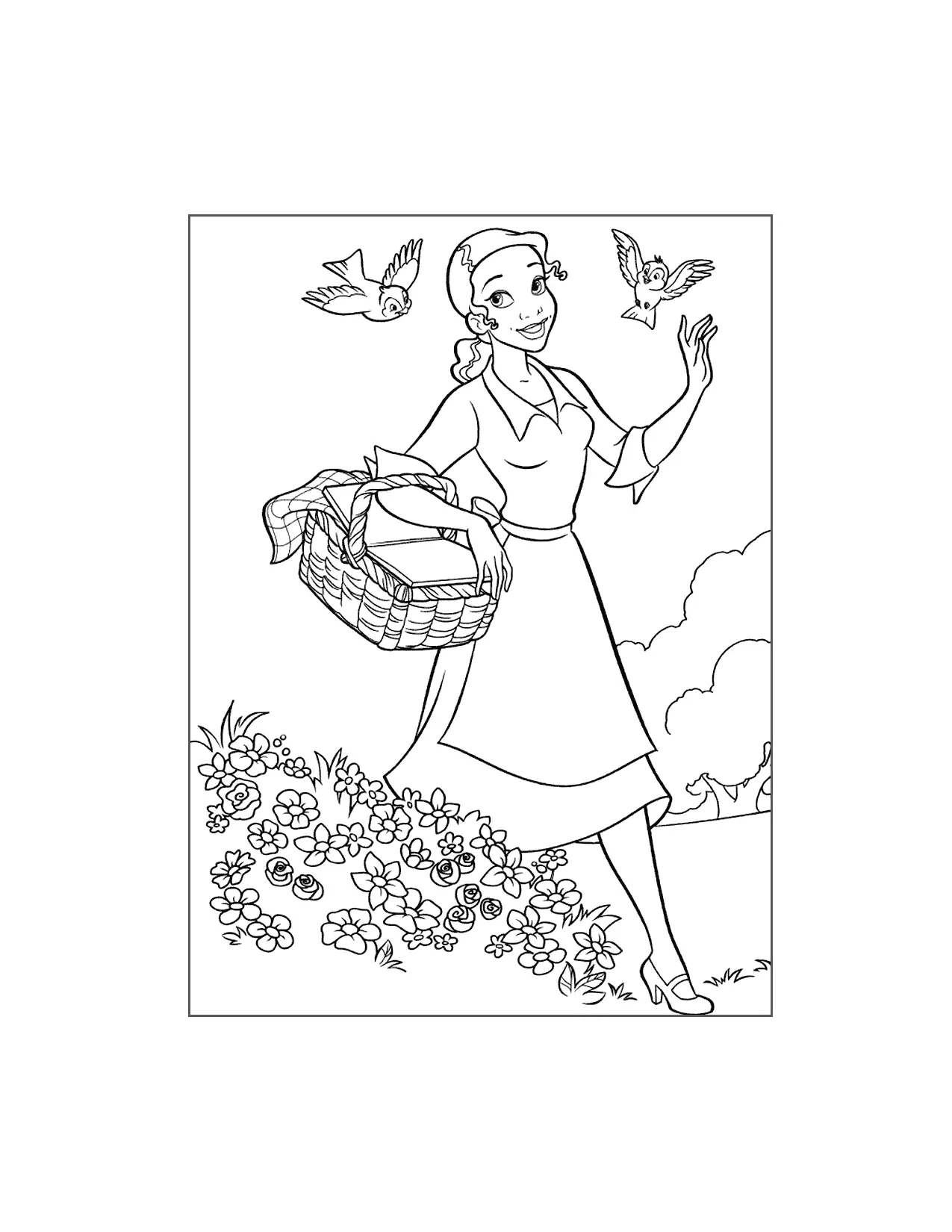 Tiana hat eine Picknickkorb -Malvorlagen