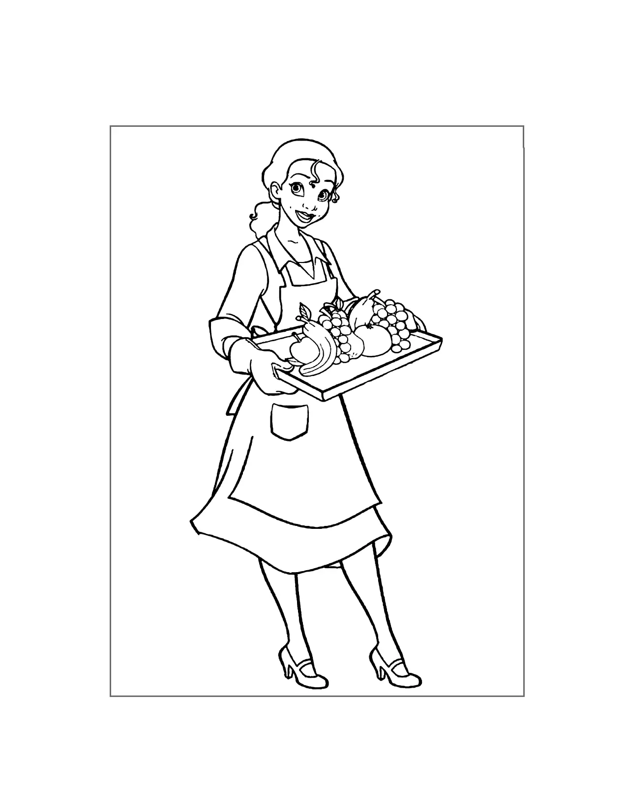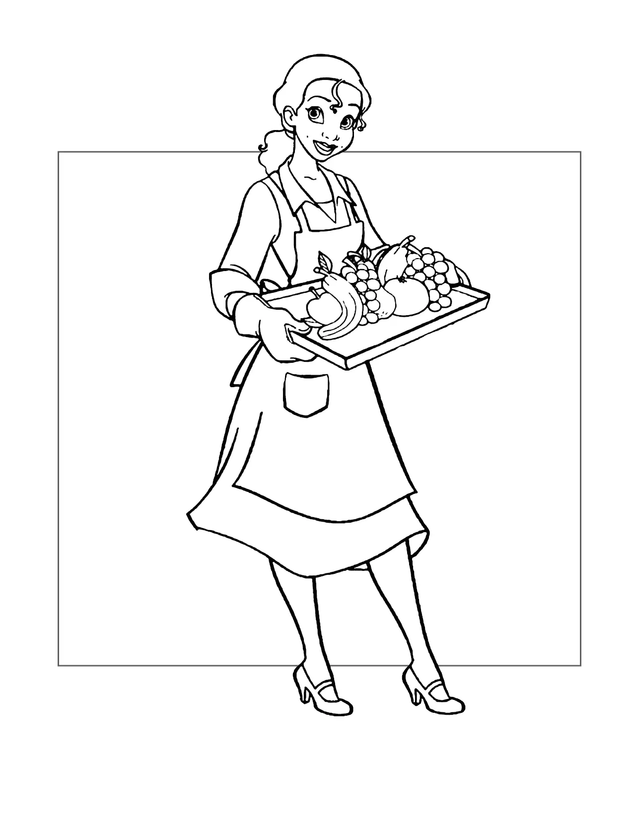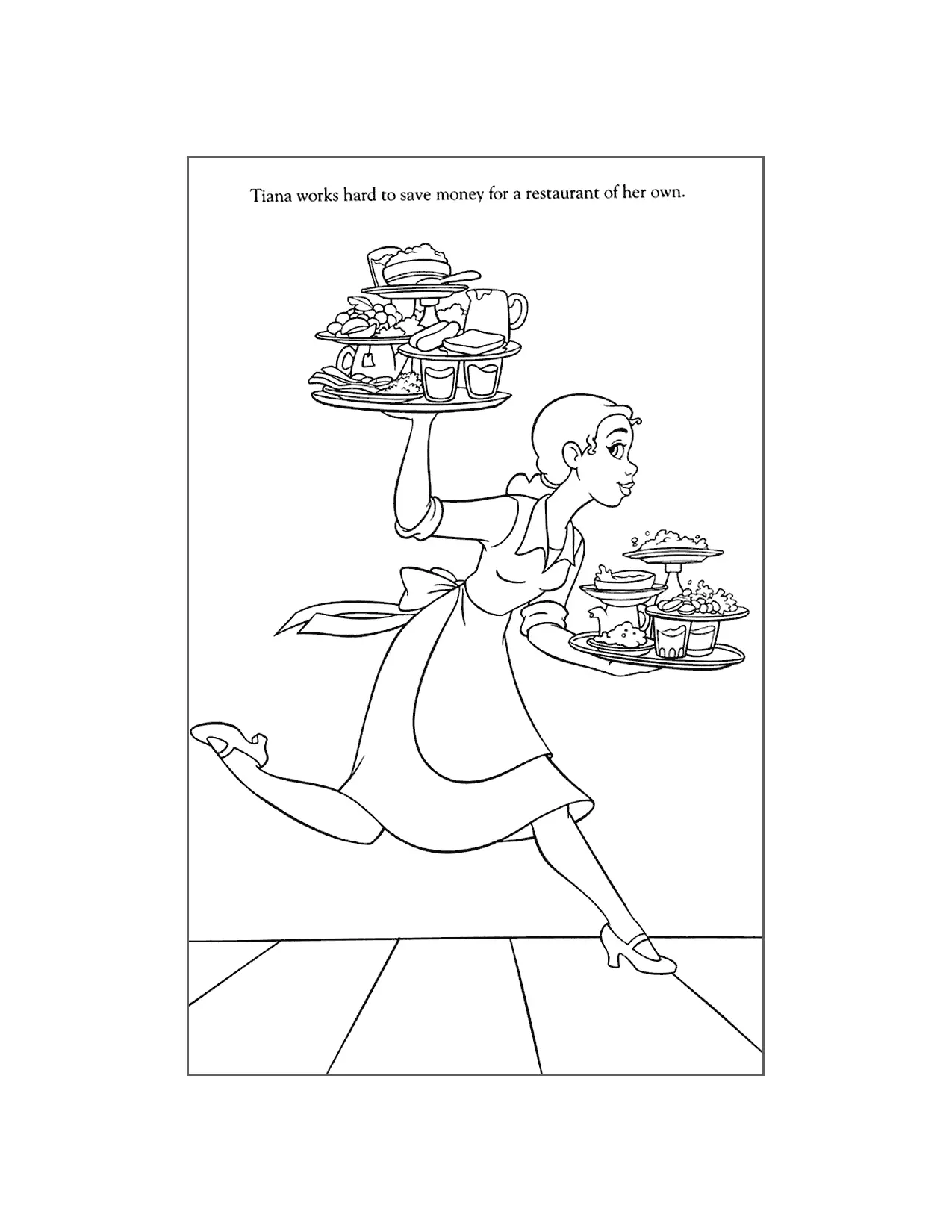 Tiana mit einem Tablett mit Lebensmittel Malvorlagen