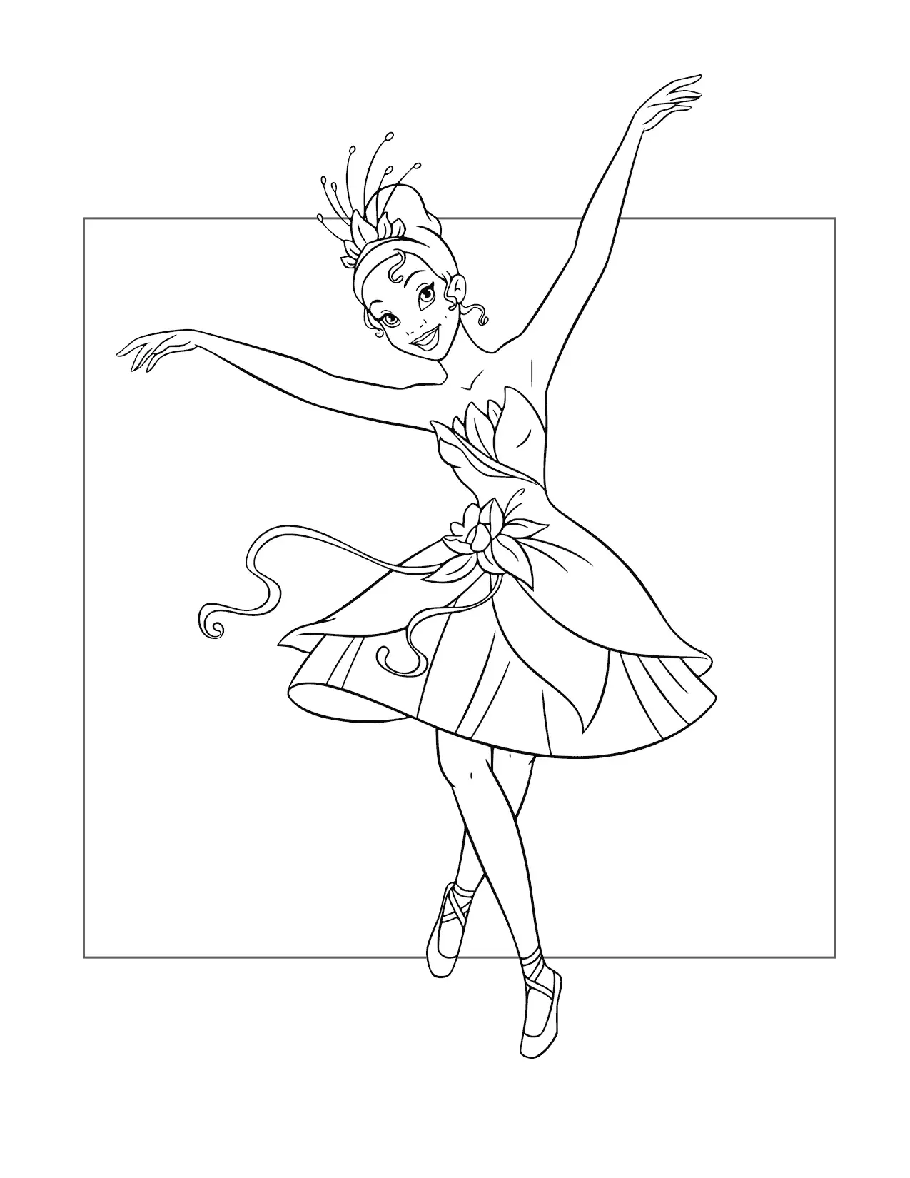 Prinzessin Tiana tanzt wie eine Ballerina -Malvorlagen
