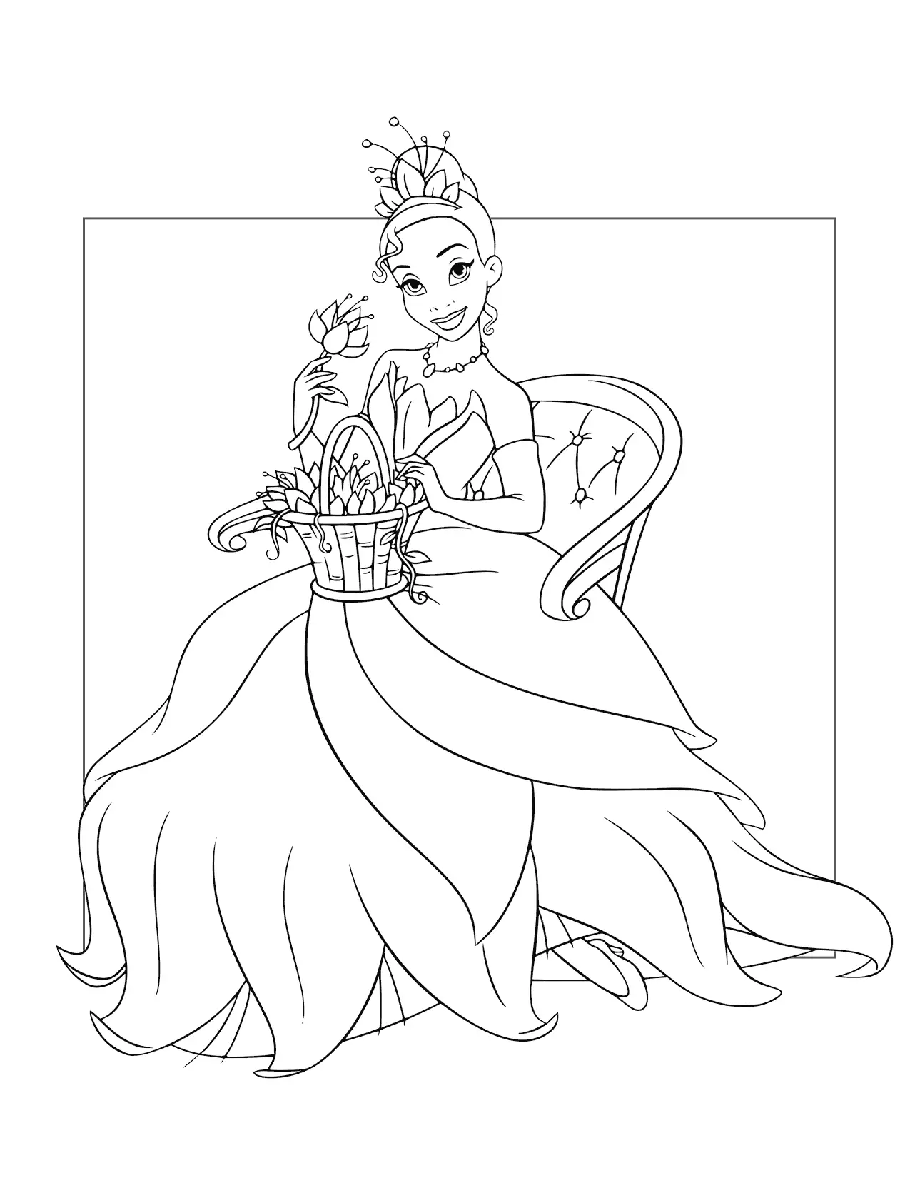 Prinzessin Tiana hat einen Blumenkorb Malvorlagen