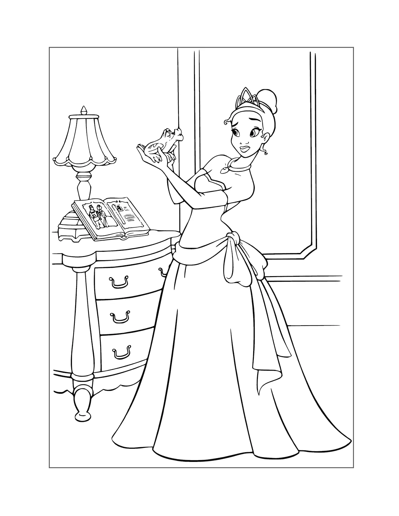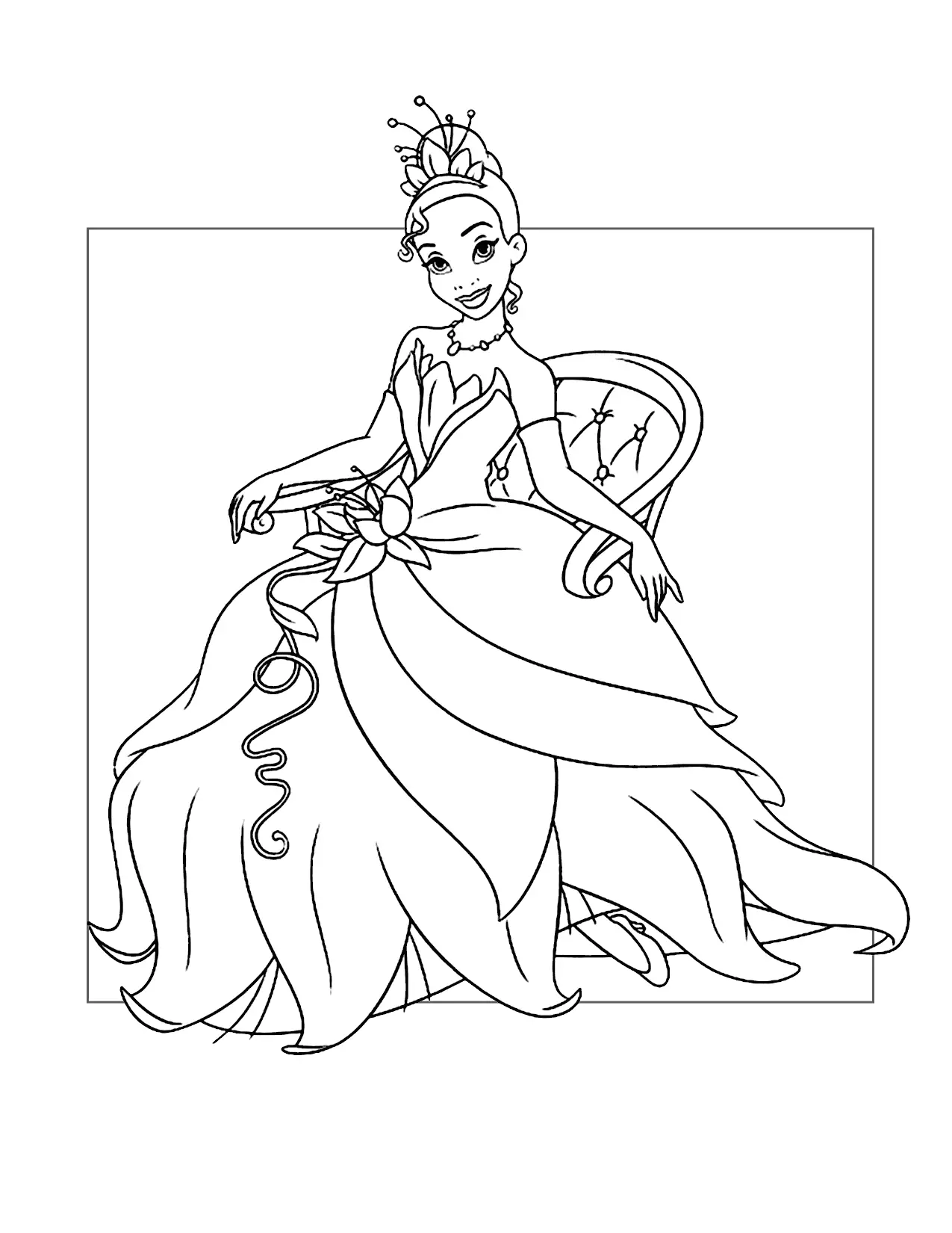 Prinzessin Tiana -Kleid und Tiara Malvorlagen